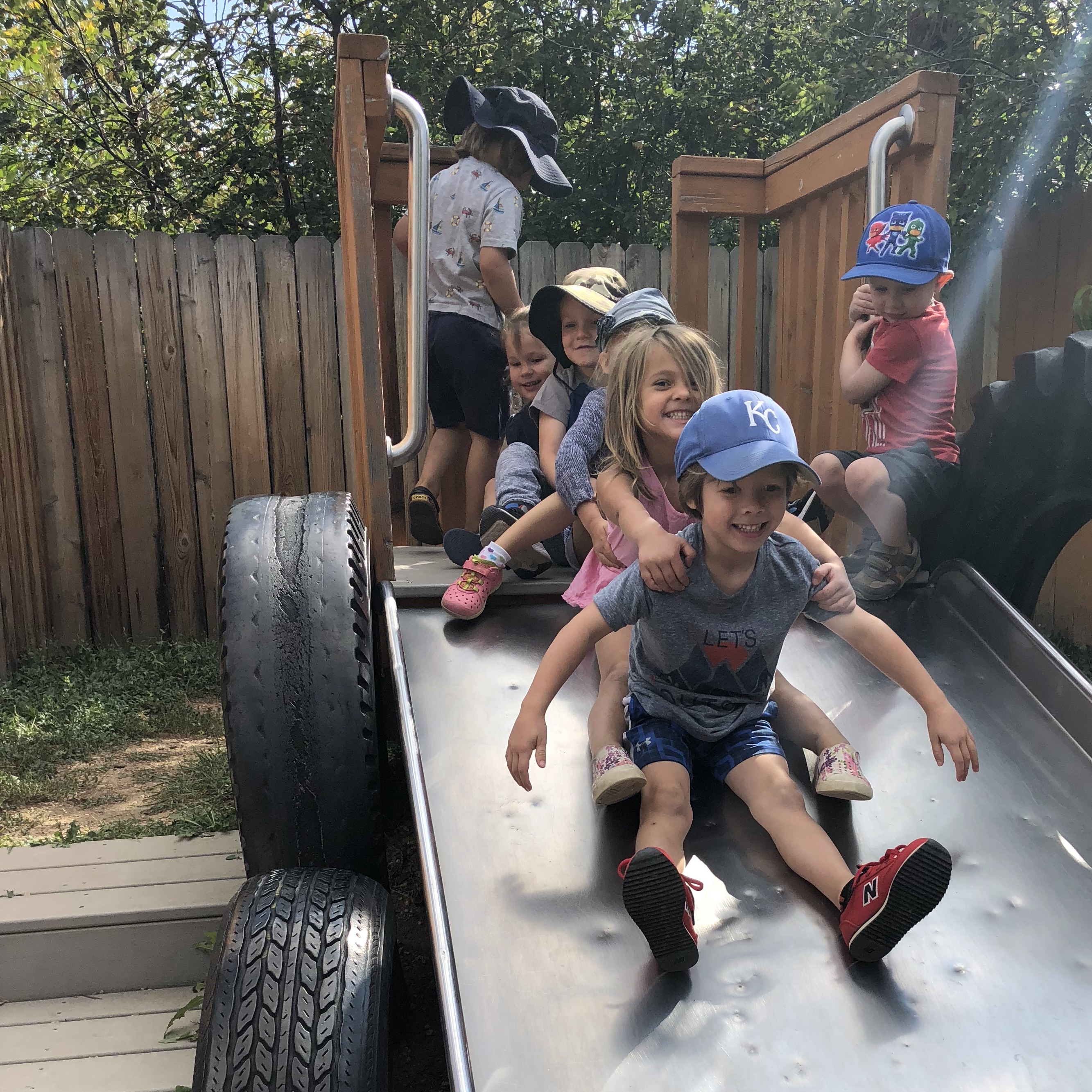 We feel that young children today are lacking in the time, opportunity and freedom to be kids in a child-friendly, yet challenging outdoor space. At Sunflower, we provide that space. We encourage the development of independence, expression, exploration and fun. The children have the opportunity to play in a pumpkin garden, eat fresh-picked, and organically grown fruits and vegetables, catch and hold ladybugs, dig in the mud or sand, run through the sprinkler or play in the snow. The children enjoy the playgrounds, open spaces, gardens and other sensory features throughout the year.